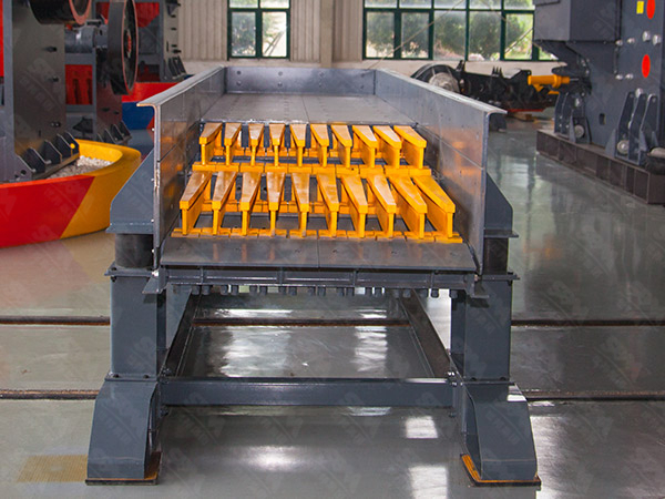 GF振動給料機采用兩段棒條組階梯高落差結構,能有效避免重復破碎,降低初段破碎負荷。