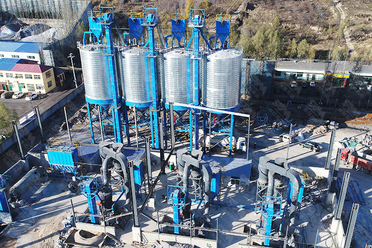 成品礦粉由螺旋輸送機(jī)送至斗式提升機(jī),而后進(jìn)入細(xì)長型深倉成品料罐。罐中粉塵氣體經(jīng)過罐頂除塵器收集后將成品存入成品罐,潔凈氣體排放。