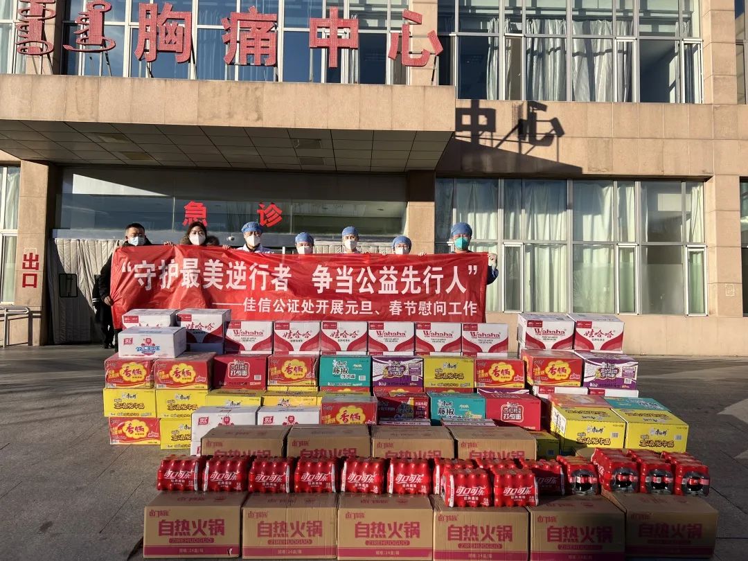 12月28日下午,佳信公證處郝鳳霞主任一行為我院東勝部急診科一線醫務人員送來方便食品,助力疫情防控工作。